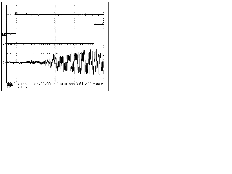Kanal 1: Trigger für die Gaszufuhr Kanal 2: Trigger für den Laserimpuls Kanal 3: Ausgangssignal des Mikrophones